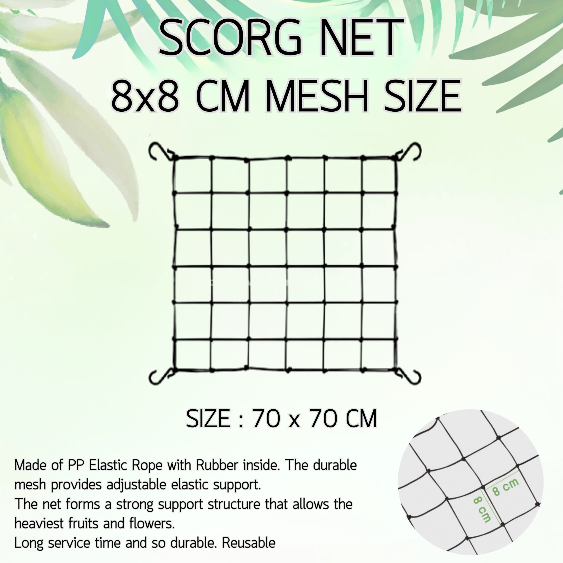 ขนาดช่องตาข่าย 8 × 8 ซม. | ขนาดตาข่าย 70 × 70 ซม.