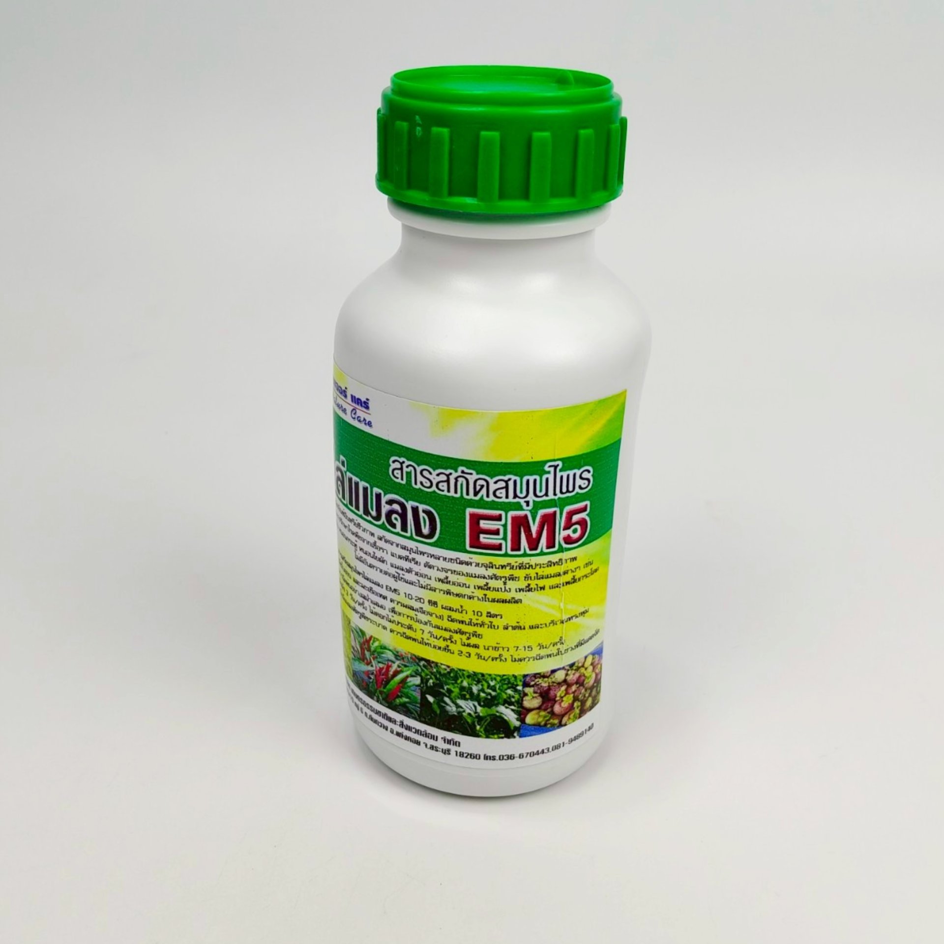 EM5 คือสารชีวภาพที่ได้จากการหมักสมุนไพรหลากชนิด ซึ่งมีประสิทธิภาพในการไล่แมลงศัตรูพืชโดยไม่ทำลายสิ่งแวดล้อมและไม่เป็นอันตรายต่อมนุษย์ สัตว์เลี้ยง และพืชผล