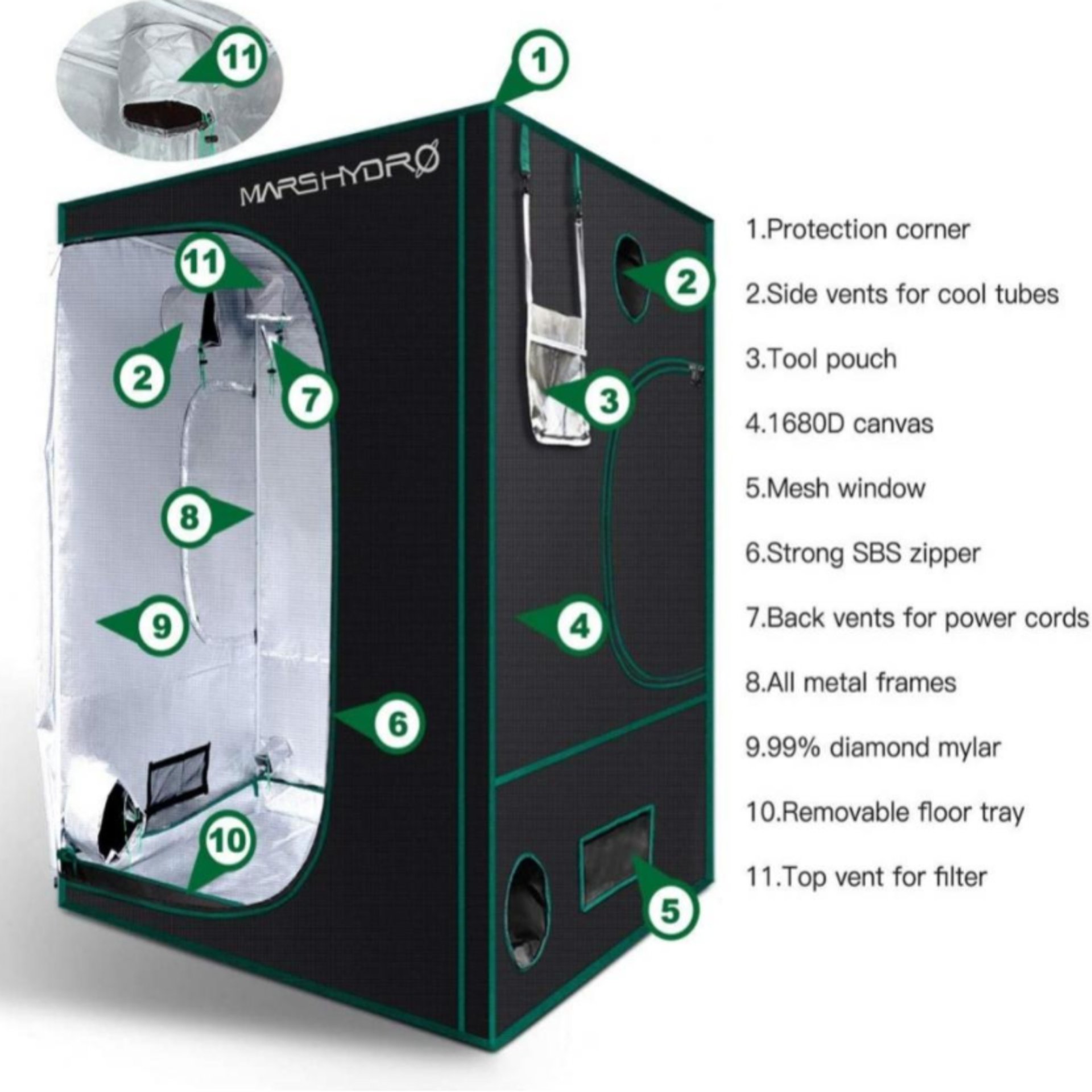 [EXTRA-THICK CANVAS] The Hydroponics Grow Crate is made from 1680D Oxford fabric, tear-proof and double stitched. The interior is highly reflective mylar-film, which locks all light in and makes an efficiency boost for lighting setups every configuration.