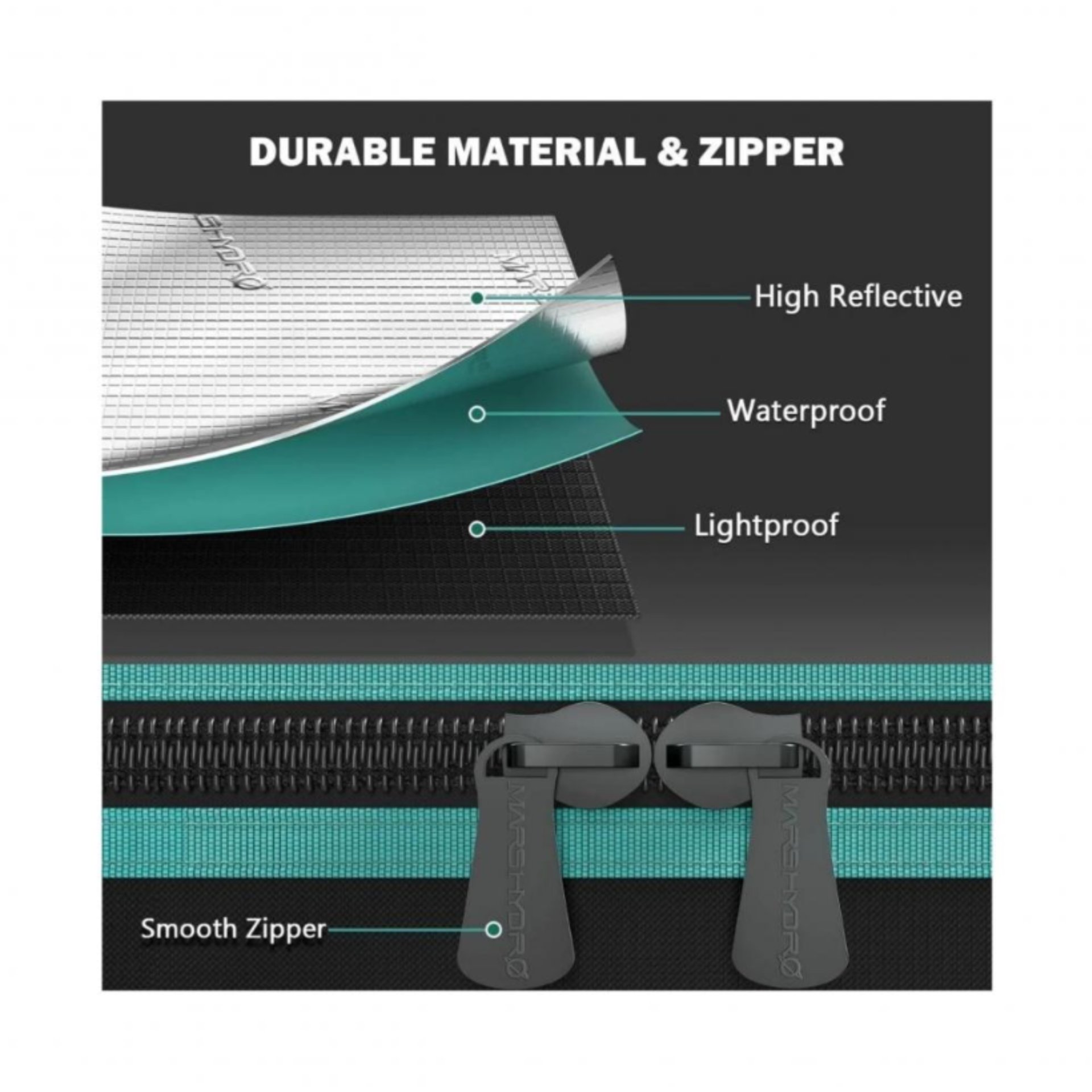 1. วัสดุภายในทำจาก ฟิล์มโพลีเอสเตอร์ชนิดยืดพิเศษ Diamond Mylar เป็นฟอยล์สีเงินสะท้อนแสงสีขาวและสีเงินโพลี สะท้อนแสงและกระจายแสงภายในเต๊นท์ได้อย่างดีเยี่ยมถึง 99% ทำให้ต้นไม้ได้รับแสงอย่างทั่วถึงในทุกๆส่วน เป็นมิตรต่อต้นไม้