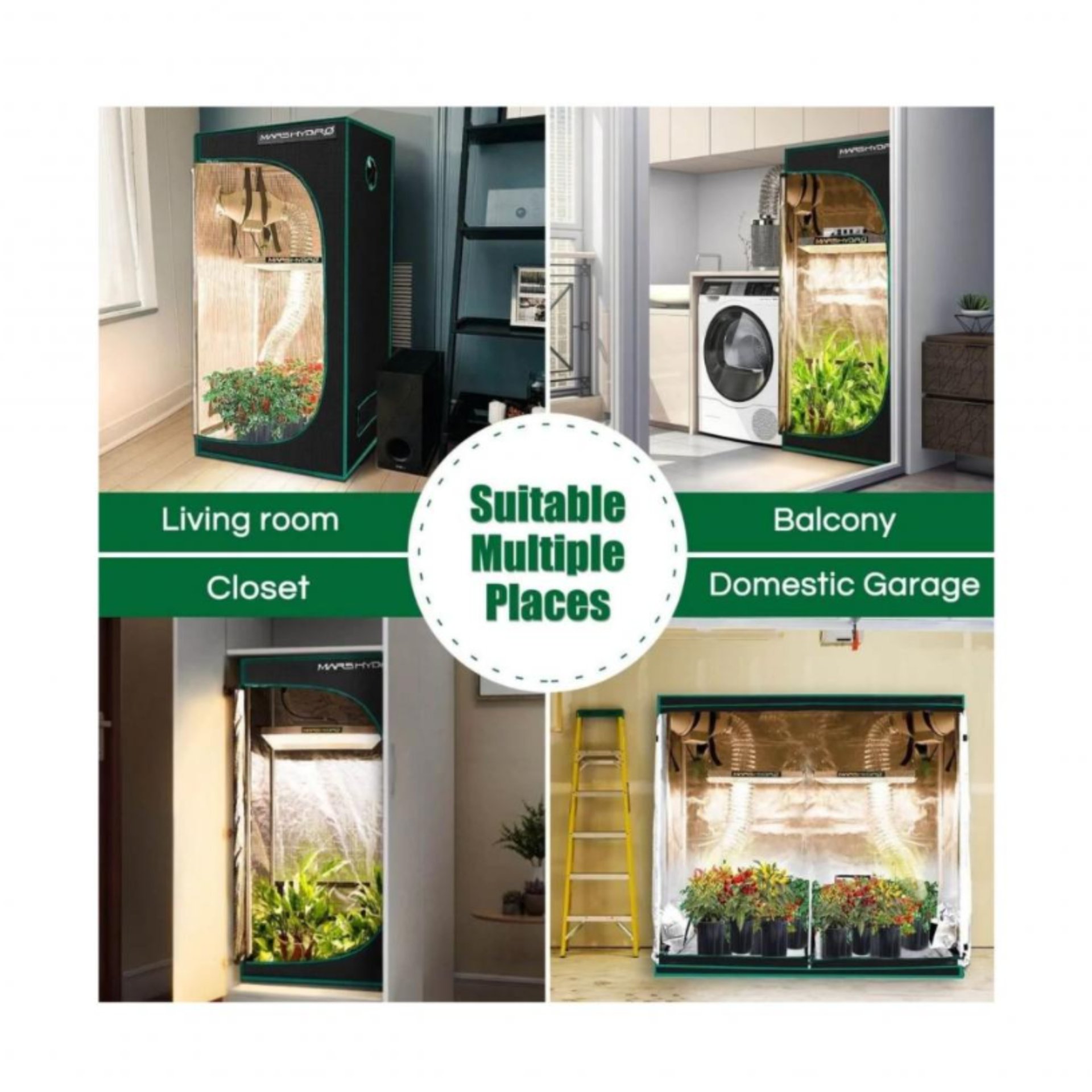 ●【Lock All Light Insid】MARS HYDRO Grow Tent Interior is made of diamond mylar. Non-toxic to the environment, no harm to plants. High-quality 1680D canvas being double stitched, (ALL OTHERS BRAND grow tent is 601D canvas) which is tear-proof for perfect light locking, No light leaks or rips at all.