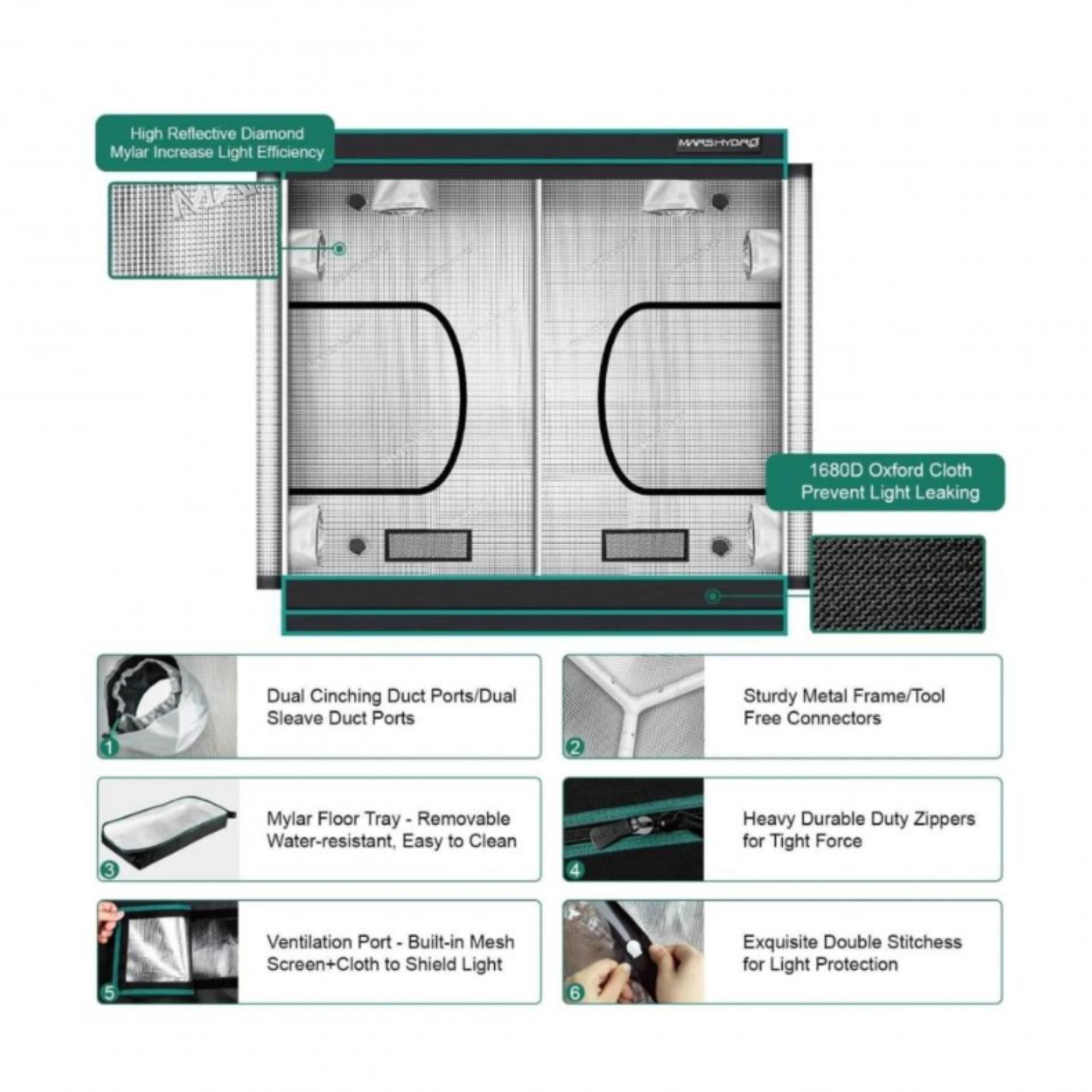 ●【Durability Grow Tent】Stable Metal corner adapters and poles are the trustful supporters of the tent. No rusting nor paint-falling. Quick easy tool-free installation. Carries strong heavy-duty SBS zippers, double layer lining to create a light-proof seal.