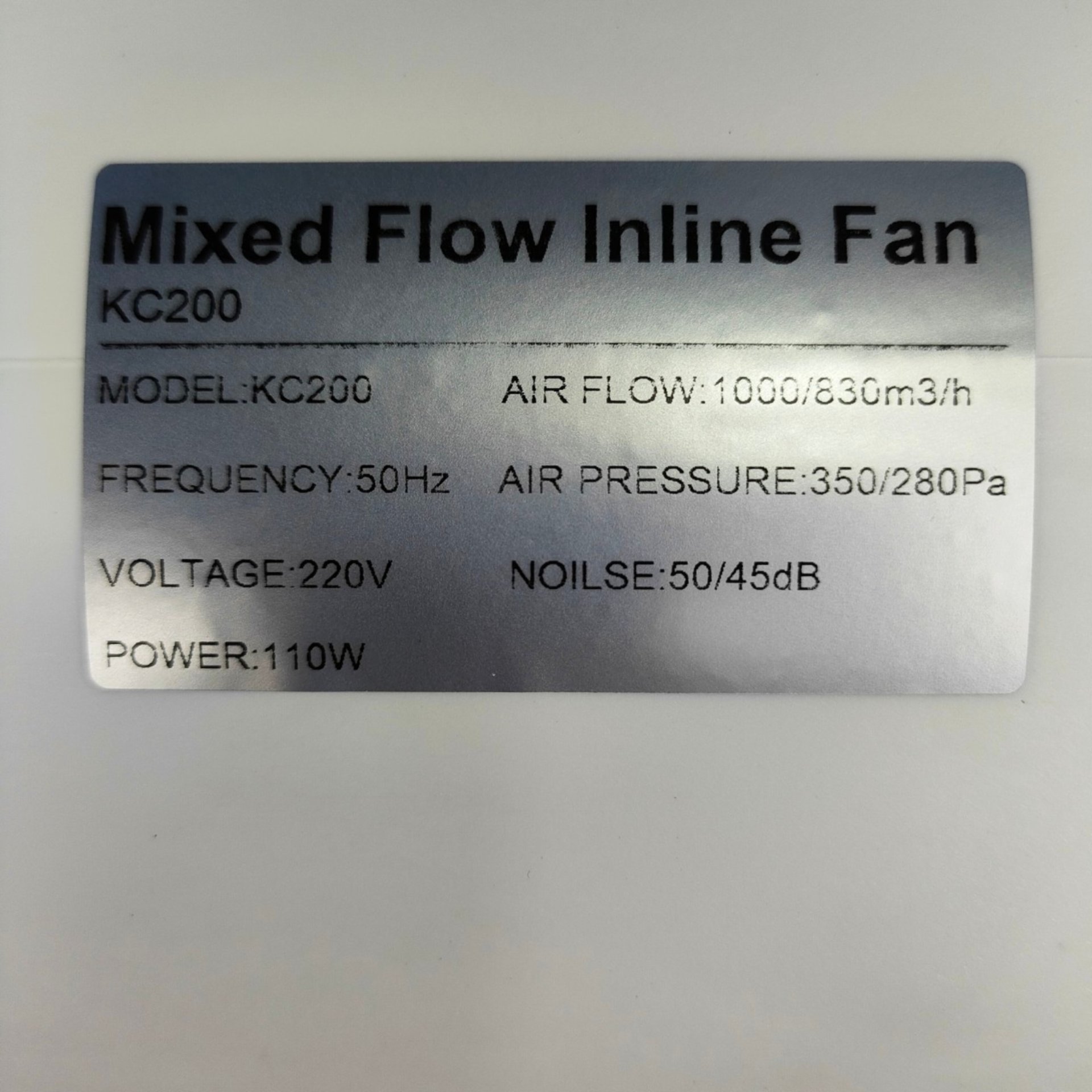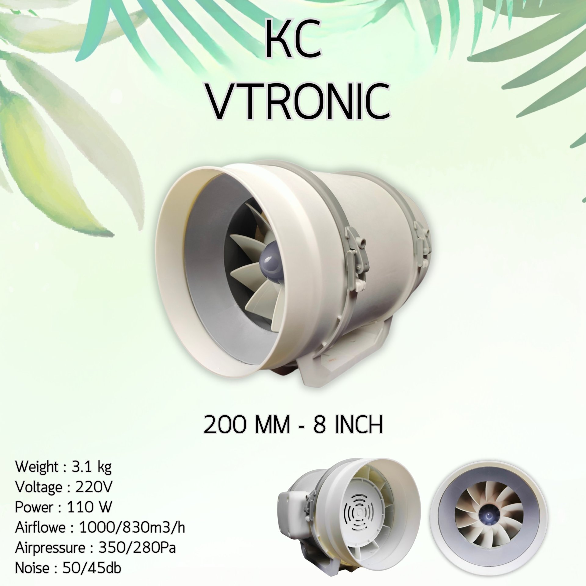 KC 200 MM 8 INCH : WHITE MIXED FLOW INLINE FAN