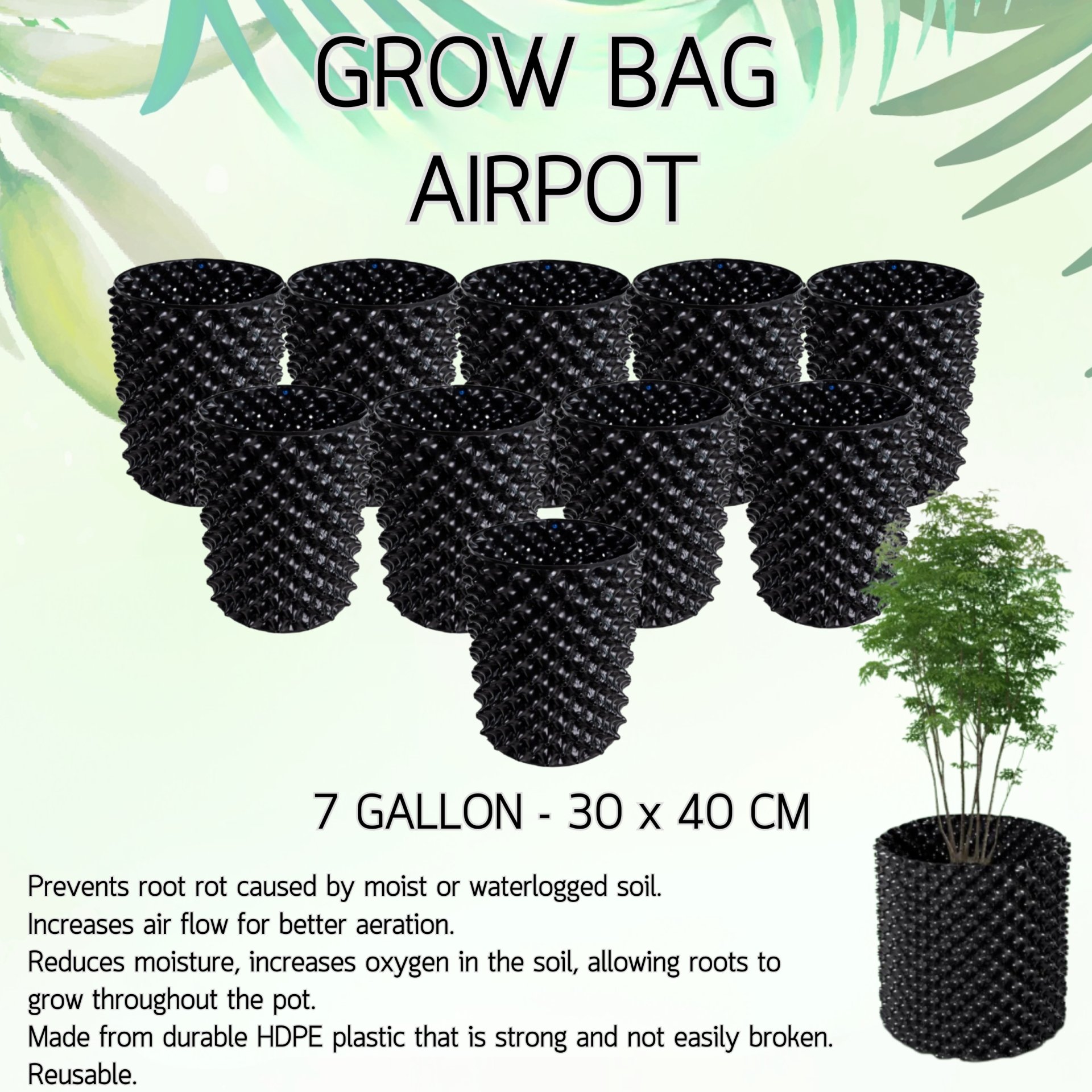 10 PIECES - AIRPOT GROW BAG 7 GALLON